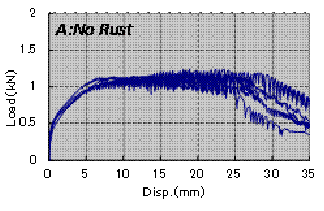 | 錆びていない釘の荷重変形 | 表面が錆びた釘の荷重変形 | |
