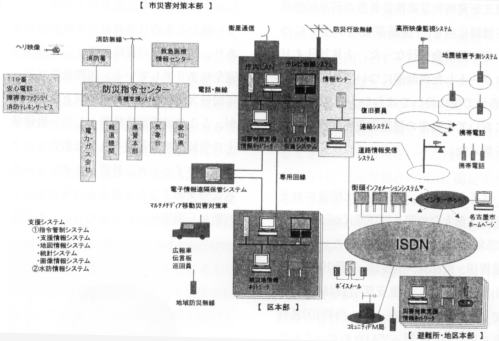 | 図1 直前システムの概念 | 図2 支援システムの将来像(名古屋市防災会議地震対策専門委員会:名古屋市地震被害想定調査報告書、1997.3) |