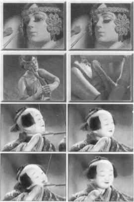 | 日本のからくり人形に対比するものとして、ヨーロッパ諸国を中心として18世紀初頭から盛んになったオートマタ(自動人形)がある。オルゴールの美しい音色に合わせて着飾った人形がさまざまな仕種をして人々を楽しませる。文字や絵を書くもの、オルガンを弾くもの、アクロバチックな動きをするものなどさまざまである。 しかし、西欧のオートマタと日本のからくり人形には、本質的な違いがある。単に、金属材料を用い、ボルトナットを多用したオートマタと木工細工の粋を凝らし、ネジを嫌ったからくり人形という機構面での違いだけでなく、その製作目的自体や見る人間への表現方法が大いに異なっていると思うのである。 オートマタの目的は、人間そっくりの動作をいかに機械で忠実に実現するかにあるように見える。たとえば、オートマタの初期の傑作であるジャケ・ドルツ父子の「文字を書く少年」や「オルガンを弾く少女」では、少年はインキ壷にペン先を入れ、インキが滴らないようにペンを振り、ペンを走らせて上手に文字を書くし、オルガンを弾く少女は、聴衆を見渡し、呼吸を整えてから、楽譜に視線を落とし、10本の指で実際に鍵盤を叩いて曲を奏でる。製作者は、機械がここまで人間に近づいた証として、オートマタを世に送りだしたのではなかろうか。日本のからくり人形にはこのような製作意図は見当たらない。 もう一つの相違点は、人形の感情などの表現方法である。西欧のオートマタは、顔の表情を示すのに、目や口を動かすのものが多いのに対し、日本のからくり人形では、頭を微妙に動かし、光の陰影によって、人形の表情を伝えようとしている。 右の写真は、有名なオートマタ「魅惑の蛇使い」とからくり人形の最高峰「弓曳き童子」の部分写真である。「魅惑の蛇使い」では、蛇をたくみに操り、目をゆっくり閉じて陶酔の表情を見せ、蛇が横たわる胸元が波打つ。なんともセクシーである。 一方、「弓曳き童子」は、矢台の上にある5本の矢を1本ずつ右手でとって、弓にセットし、2メートルほど離れた的に狙いを定めて矢を放つ。矢が的に当たれば、喜びながら次の矢を取りに行くが、矢が的に当たらなければ、今度こそという表情で次の矢を取りに行くという座敷からくりである。6本の糸が首と頭の動きを微妙に変え、その傾きと陰影によって観客に人形の感情を伝えているのである。からくり師は、人形の顔をその傾きと陰影によって喜怒哀楽が表現できるように仕上げるのである。もう少し説明を加えておきたい。矢が的に当たれば喜び、外れれば真顔になるという仕掛けはこうである。人形は、矢が当たっても外れても同じ動作をする。矢が当たった時と外れた時では、観客の心理状態が大きく異なることを利用している。小さな的に当たれば、観客は喝采して人形の顔を見るし、矢が外れれば、次は頑張れよという心理状態で人形を見る。「弓曳き童子」だけでなく、山車からくりを含めて多くのからくり人形の演技は、観客の心理状態も含めての演出がなされている。 |