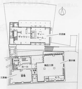 | ムロ(工場)の再現 瀬戸市マルチメディア伝承工芸館(2000年) | 瀬戸市新世紀工芸館・1階平面図 |