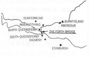 | 図−1 フォース橋の近況写真 | 図−2 フォース橋架設地点(出典「フォース橋100周年記念誌ザ・フォース・ブリッジ・センチュニアリー」/1990年発行) |