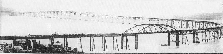 | 図−3最初のテイ橋(落橋)の全景(出典『世界の橋」/丸善2001年3月発行) | |