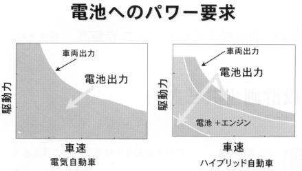 ![]() 図3ハイブリッド自動車の電池の使い方 |