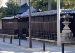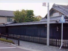 ![]() 「いち倫」の黒塀は一文字瓦の切妻屋根。竪籤玉垣をめぐらす |