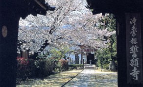 ■発掘者コメント 八事興正寺の隣、八勝館の手前北側に、法喜山誓願寺という寺がある。 浄土宗西山派京都禅林寺・光明寺の両末で1572年(元亀3)空範上人が清洲に建立、1604年(慶長9)名古屋城築城の折、中区白川町(現・市美術館)に清洲越えをし、1942年(昭和17)強制疎開で現在地に移築した寺院である。 上人が比叡山より杖として携えてきた桜が継承され、桜誓願寺と呼ばれている。境内にも由来の菊桜があり、ソメイヨシノに少し遅れ、新緑の間に大きな八重花を咲かせる。 八事の傾斜地に配される境内の雰囲気は格調高く、名古屋城本丸の遺構である本堂内陣の絵天井・仏像・宝物などがあるが、なかでも特筆すべきは、寛政年間(1789〜1800年)に岡谷家5代6代により招鶯館として広小路鉄砲町に建てられ、約140年後の1933年(昭和8)に10代惣助真愛により湯の山に月見の別邸として移築された杉立庵である。大徳寺狐蓬庵忘筌を意識し、全体を田舎家風8畳2間と4畳半、それに7畳の控えの間という配置で従来の狭い茶席の観念を打破している。これが1961年(昭和36)岡谷家の菩提寺である現在地に再移築された。 臨む庭は松尾流家元宗吾師により、竜安寺を思わせる構築に北山杉を取り寄せて植え込み、北側には茶席報田庵(赤松猿面の床柱)など、石庭と席の調和がすばらしく、その他妙技庵などがあり、境内は市内とは思えない風雅な佇まいを楽しむことができる。 |
