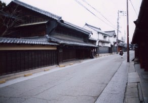■紹介者コメント 有松は、名古屋市の南東部に位置している。旧東海道五十三次の池鯉鮒(知立)と鳴海の宿の間に、1608年(慶長13)に開かれた村である。絞り染めとともに発展してきた町である。1784年(天明4)の大火で村のほとんどが焼失、これを機に旧東海道沿いの町家は、従来の茅葺を瓦葺きに改め、塗籠造りとしたことから、現在見られるような豪壮な商家が建ち並ぶ町並みが形成された。 東は千越川に架かるまつのね橋から西は祇園寺までの約800mにわたって、旧街道沿いに特色ある塗籠造りの町家が多く残っており、優れた歴史的景観を今に伝えている。名古屋市は1983年(昭和58)に町並み保存地区に指定している。 ゆるやかに曲がった街道沿いに、間口が広く、中2階建て切妻、瓦葺。1階の前面には半間の土庇と格子がつき、2階の窓は虫籠窓である。屋根や庇が前面で揃い、これらの均質な意匠の建物が建ち並ぶ有松の町並みは心をなごませる。 数年前からこのあたりは土地区画整理事業が行なわれている。東西に走る旧東海道のほぼ中央、南北に走る道路を現在、拡幅中である。道路沿いの建物は、町並みを意識しながら?新しい建物に替わっていく。「保存と開発」この言い占された言葉は、有松では今でも進行中である。 |