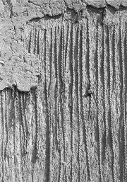 ![]() 朽ち果てて職人の手仕事の跡が出てきた。土蔵の仕込み縄の形状 |