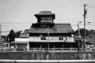 ■発掘者コメント 瀬戸はやきものの町である。1300年の歴史があると言われている。市の中心を流れる瀬戸川沿いに丸一国府陶器店は建っている。最近建て替えられた名鉄瀬戸線尾張瀬戸駅を降りると、目と鼻の先である。市の観光用パンフレットには必ず掲載されるくらい、市のシンボル的建物である。この辺りは、2005年愛知万博開催に合わせて駅前再開発ビルの工事などが始まり、その姿を変えようとしている。どういう町に変えようとしているのか。 丸一国府陶器店の○は犬山藩成瀬家の家紋である。火山藩の家老だった人が明治のはじめ、名古屋市大曽根で丸一商店として創業する。1921年(大正元年)に現在地に陶器部門を移転し、戦後、当時の番頭が屋号とともに経営を引き継ぎ、現在に至っている。城郭に似せた造りは、ひときわ人目を引いたことだろう。 木造2階建て、切妻屋根桟瓦葺、望楼をのせる。内部4層。1階は広い土間と箱階段がある店舗、所狭しと陶磁器が並べられている。2階は巾廊下で仕切られ、洋風応接間を配する。3層の小屋裏は倉庫、望楼は広縁がある8畳座敷になっている。4方に窓があり、かつては、石炭窯の煙突が林立する姿を眺め、その繁栄に酔いしれたことであろう。 道路拡幅のため、陶器店は曳き家される予定である。とにかく壊されることだけは免れたようである。シンボル的な建物をどのように残していくのかこれからが楽しみである。 所在地 瀬戸市栄町41 建設年代 明治末 |