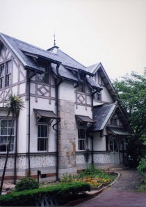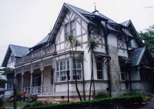 | ■紹介者コメント 旧中埜家住宅は、名鉄河和線知多半田駅より、100メートルほど北寄りの商店街の一角に建っています。今は、T,sCAFEという紅茶専門館として、地元の人々に親しまれており、私たちも英国風の歴史ある洋館の中で、紅茶と洋菓子のアフタヌーンティーを楽しむことができ ます。ただ、残念なことは、周囲にいろいろな建物が建てられてしまい、別荘として建てられた建設当初のように、衣浦湾を望む丘の上に建っているというイメージはありません。 この住宅は、1911年(明治44)に中埜酢本店の先代である第10代中埜半六が、英国留学中に見たヨーロッパの住宅の美しさにひかれ、それを模して、当時の名古屋高等工業学校(現・名古屋工業大学)建築科長である鈴木禎次教授に設計を依頼し、志水組の志水正太郎の施工で、別荘として造られたものです。 屋根は、手割りの天然スレートで、大屋根は寄棟ながら、南面はベランダをはさんで左右を切妻屋根とし、他にも北側階段室の屋根などを切妻とし、複雑ながら変化に富んだ美しさを醸し出しています。外壁はハーフティンバー様式を取り入れ、壁は木摺下地漆喰壁、1,2階ともにベランダを設け、1階ベランダは列柱を5本建て、柱はエンタシス風を形どっています。内部も各室に設けられた暖炉や、天井の装飾、扉、窓なども本格的な洋風の内装で見ごたえがあります。 |