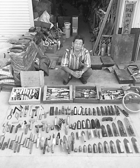 渇ェ田建工代表取締役岡田明廣氏祖父は黒の磨き壁、父はプラスチックゴテと、私の家では二代が並んでオリジナルの仕事をしたことになる。実はこれは職人の世界において、何ら特殊なことではなかった。