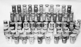 カラーで見せられないのが残念。色鮮やかな土をガラス瓶に保管