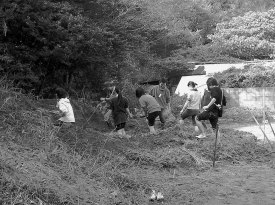 | わっかの会のメンバーズ。素足に素肌で土の感触を確かめる |