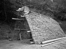 骨組みに土を塗る。ここまでの工程一日で完成 |