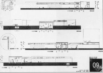 | 非常勤で設計演習の手伝いをしていることもあり、自分ならばどのようにアドバイスをするか、また何を軸に組み立てようとしているかを探りながら審査したつもりであるが、投じた票は全て他の審査員とは異なった。敷地の特性を周囲の状況・環境との関係から読み取り、北側は銀座街との露路性の演出、南側は川沿いの修景化を軸に、敷地が切り取る周縁部を商店街として構成したものである。南北がそれぞれ異なった成立要件である形態(ファサード)は、当然敷地中央部で出合うことになり、その整合性を中央の「均質空間」で保とうとしているが、それらの関係性が私には今一つ理解出来ず票を投じなかったが、スカイラインや店舗の空間的処理などその構成は確かで、他の審査員から票を集めたのは納得できた。(車戸慎夫) | |