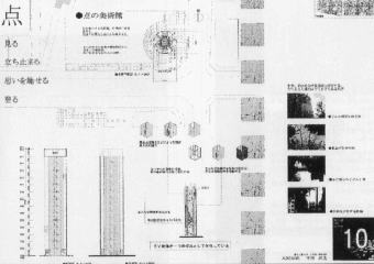 | この作品は、21世紀になった現在でも、世界各地で起こっている戦争や紛争に対して、まず、問題意識を持とうと、戦後ほぼ60年、風化しつつある日本の戦争体験、痕跡に働きかけることを、具体的な戦跡〜豊川海軍工廠跡地の整備を通して提案。 毎日報道されるイラクや北朝鮮など、「平和な日本」も無関係ではあり得ないとの認識から、恐らく折に触れてこの戦跡のことが気になっていたであろう中で、卒業設計のテーマに選び提案。 アメリカの同時多発テロ以来、建築の分野においても、戦争と平和への関心や発言が高まり多くなっている中で、このコンクールヘの応募にも、数点はこのテーマの作品があるかと思っていたが、唯一この作品のみで、心もとなく思ったのでしたが、問題設定から、具体的なアプローチ、敷地全体を記録する記念館の計画に繋げての提案であり、私としては、とても引かれた作品です。(西尾貞臣) |