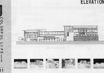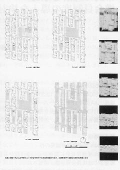 | 敷地というものが、その場に適したボリュームをもった立体であることから、プログラムを組み立てたことはよく理解できる。無限定な平面に、ある意味を持った床を置き、内・外部をつくる壁を立て、天井を張り、それらに囲まれた内部だけが空間であるはずもなく、床・壁・天井が空間を規定する主語ではないこともよく分かる。空間の地と図の処理は確かに上手だと思う。露路空間を南北に切り取ることは、切り取られた残りの空間(ボリューム)の形態も整合性があり、また直交する軸に架けられたパスも、全体の関係性(回遊性)を合理的に形成している。ただ、住棟は東西の軸にあるべきで、この基本的な処理こそがプログラムの腕の見せ所でありかつ難しいところで、その未消化が残念である。(車戸慎夫) | |