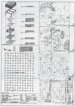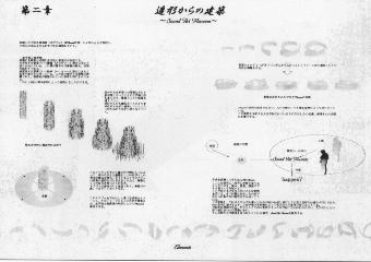 | 設計手段として、違った分野の尺度を使用して数値化するといった手法には人間の知的好奇心をそそるものがあるらしい。そこにはまったく根拠の無い数遊びであるといった批判を背に受けながら、過去の経験値によって決定される退屈な人間の思考の限界を超えられる計算尺になるのではといった期待感がある。音楽の旋律が紙面に踊るさわやかな表現で多くの審査員の心をつかんだものの、夢から覚めるのも早かった。音楽と建築の類似性から引き出される設計手法の説明だけではなく、その上に、ある音楽家の活動を記念してどこに誘致するのかといった場所の選定の話とか、その場所ではどんなミュージアムが必要かといった具体的な話が加わって建物の背景が浮かび上がれば、上位入賞ができた作品である。(廣瀬高保) | |