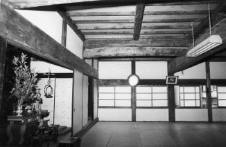 | 親鸞は、当初小堂や庵室において他力の本願・信心・念仏・往生を説き、教団や寺院の設立の意思はなく、仏像などの本尊すら必要としなかったとされる。親鸞が本尊としたのは「南無阿弥陀仏」のような仏への帰依を誓う「名号」であり、そこでは人家の棟を上げた程度の小規模な道場があればよかったのである。そのような道場が、越前・越中・飛騨・近江などの山村のわずかに残されている。 安養寺道場(岐阜県郡上郡八幡町)は、福井県大野郡和泉村にあった穴馬上半原の道場を九頭竜流ダムの建設のために移築したものである。安養寺は、康元元年(1256)に近江国蒲生郡で創立され、6世仲淳の代に安八郡に移され、蓮如より寺号を下されたとされる。この建物は、安養寺の支配下の道場で明和9年(1772)に建立されたものである。桁行7間、梁間5間、切妻造り、当初は萱葺であったとみられる。間取りは、40畳の「広間」を中央におき、妻側の奥1間半の中央に間口に2間の「仏間」、その向かって左側に6畳の「坊主部屋」、右側に4畳半の「花部屋」を設け、妻側の前1間半の手前に入口土間を造り、他を倉庫としている。「広間」では上部に野梁を十字に組み、低く棹縁天井を張り、内陣と余間の前面では床高を上げて襖を入れ、「仏間」は板間とされ、奥には通し仏壇を構えており、仏壇に阿弥陀如来・宗祖・名号などの画像を祀った極めて素朴な建物であった。 |