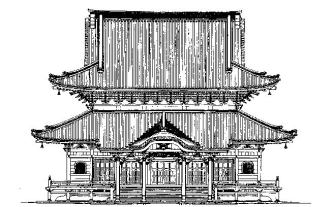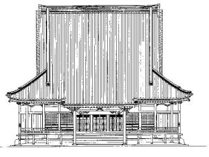 | 専修寺伽藍配置図 | 専修寺如来堂正面立面図 |