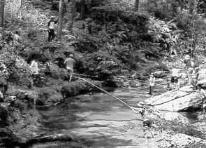 阿多古川で魚釣り