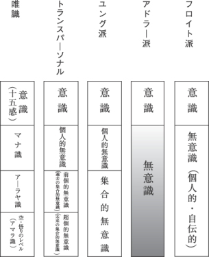 ![]() 図1 仏教(唯識学派)と心理学各派の心の捉え方1) |