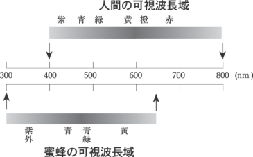![]() 図4 人間と蜜蜂の可視波長域 |