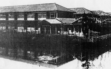 | 1950(昭和25)年の建築士法の公布で、野田一級建築士事務所となる。この時期の設計としては、平田製網滑宿舎や寮、豊栄工業渇抹l工場、萬里工業鰍フ工場、事務所、寄宿舎などがある。昭和30年代になると、暁学園の小中学(写真2)、幼稚園、専用住宅、佐野製作所の工場、倉庫などを設計する。野田新作のほとんどが四日市市内のものである。 また、昭和20年代、30年代を通じて、住宅の設計を行っており、宗村佐信邸増改築(1950〜51年)、平田佐造邸(1950年代前半)、生川平作邸(1959年)などがある。野田新作自邸も1955年に建築された。自邸には壁式RC造の納戸(1953年、1間半×2間)がある。 | ![]() 1955年頃の暁女子専門学校(文4) |