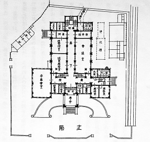 ![]() 三重県会議事堂1階平面図(1930年) |