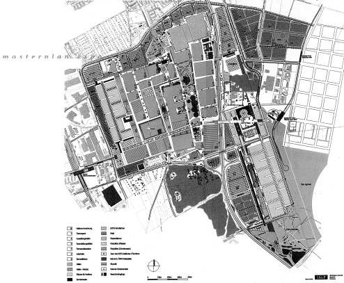 交通インフラとしては、既設の鉄道(Uバーン、Sバーン)がメッセ会場への北側と西側からのアクセスとして整備されていたが、このうちSバーンを新幹線(ICE)が停車できる駅舎に改良している。また、東側からの新たなアクセスとして、開発地を縦断する鉄道(ライトレールウェイ)が整備されており、メッセ会場と周辺地域の利便性を向上させるとともに、駐車場の削減による緑地の増加にも貢献している。 @効率的な会場地計画 地域開発を促進させる組織(EXPO GRUND GmbH)は、会場地の7割近くの区画を占めるメッセ会場を活用しながら、残りの区画で博覧会のために整備される施設を、すべて恒久施設として計画した。さらに、リスボン博で用いられた出資方法(開幕前から閉幕後の出資者を募ることで、開発地の景観と施設用途を計画時点で示す方法)が採用されるなど、既存の資源を背景に、地域開発の姿を手戻りなく打ち出す会場地計画となっている。 A環境に配慮する視点 閉幕後1年に満たない会場地は、メッセ会場を中心にビジネスパークとしてまとまった景観を見せていた。会場地計画で取り入れられた既存の資源や恒久施設の活用、また交通インフラ導入による駐車場の削減と緑化は、地域開発を促進させるだけでなく、環境配慮の観点からも評価されており、地域開発と関連する博覧会が果たす、新たな役割の一つとも言える。 |