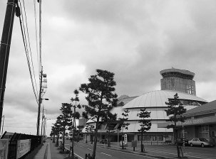 | 次に、当初の整備目標であった工業団地が一部変更された博覧会として、1997年に鳥取県境港市で開催された「山陰・夢みなと博覧会」を取り上げ、出自を同じとする前項の博覧会タイプを比較する。 会場地(37ha)は、美保湾に面した埋立地の突端部に位置し、長年にわたり鳥取県が工業用地として造成を進めてきた土地であった。しかし、当時の工業団地を取り巻く環境は、長引く景気低迷の中、供給過剰との指摘がなされており、閉幕後の企業誘致にも苦戦が強いられる状況だったと考えられる。会場地計画では、南端の湾に面した土地の一部(1ha)に3つの恒久施設が配置され、閉幕後はレクリエーション施設(夢みなとタワー、みなと温泉館)、商業施設(FAZ倉庫)に転用されている。これらの施設は規模こそ小さいが、工業団地の中にあって、用途的にも景観的にも特異な環境を形成している。 このタイプの博覧会には、単に閉幕後の企業誘致を促進させるだけでなく、開催当時の祝祭性を継続させるような用途を施設とともに残すことで、整備の方向性を修正し、地域開発を活性化させようとする戦略が垣間見える。 |