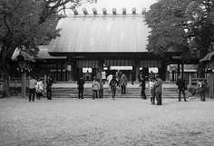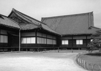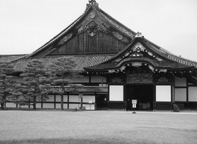 | 上に述べたように、人間の心は場合によって、さまざまな建築空間の性質を要求する。 この端的な例として、二条城二の丸御殿があげられる。その「大広間」は徳川幕府末期に、第十五代将軍徳川慶喜が多くの大名を集め、大政奉還を伝えた場所として有名である。そこでは幕府の威厳を感じさせ、行われる儀式に権威を与えることが重要であった。 図1(a)に示した正面の外観にも、同じように権威を感じさせようとする意図が見える。華美な装飾を施した建築物の妻側に玄関を設けることによって人を威圧し、より威厳を高めている。このことは、図1(b)に示すように、同じ建築物の平側と比べると明らかになる。 二の丸御殿の「黒書院」は、将軍が譜代大名や側近を集めて相談をした場所とされている。そこでは、「大広間」に比べて天井の高さは低く、その空間の規模も小さくなっている。 また、「白書院」は、将軍がくつろぎ、眠る部屋であった。そこでは、さらに天井の高さは低くなり、より空間の規模も小さくなっている。 このように、絶大な権限を持った将軍といえども1人の人間であり、その人の心の在りようによって、求められる建築空間の性質は異なる。 |