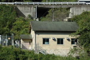 | ■発掘者コメント 当初、足助発電所を調査予定でしたが、昭和63年頃に建て替えが行われたとのことで、中部電力にお願いし近傍で同じころに建てられた発電所を探して頂いた施設が川下(小原)水力発電所で、現在、愛知県下矢作川流域ではほとんど当時のまま残っている施設はないということです。この発電所も大正時代に建て替えられ、その当時の姿に近い形で現在に至っているとのことです。 以下、2001年10月に中部電力から発行された「時の遺産 中部地方電気事業史料目録集」より記させていただきます。 矢作川を望む崖に建つ、三河電力発祥の地現在の中部電力で3番目に古い発電所であり、三河電力発祥の地でもある。大岡正を顧問技師に迎えて、1900(明治33)年に運転を開始し、田代川の水力を使用して名古屋、瀬戸方面に電気を送っていた。当時、まだ国産化されていなかった回転界磁形三相交流発電機の製作を明電舎に依頼、容量100キロボルトアンペアという当時では記録的な大容量の発電機を導入したことでも知られる。 また、発電所の建物は矢作川水系の発電所で、唯一の木造建築であり今も大正時代の造りのままで、見上げれば、屋根に近い壁に電線を通すための3つの穴が残っている。切りたった崖っぷちに建つこの発電所は、今も当時の面影を残している。 三河電力は1899年7月に事業許可を受け、1907年6月に名古屋電燈(1887年9月事業許可)と合併し、1939年には愛知県下8事業所が東邦電力に編成され、1951(昭和26)年5月、電気事業再編成の実施に伴い、9電力会社の一つとして中部電力株式会社が発足した。 中部電力の担当者は、いわゆる「建築」として評価されうる建物ではなく、発電設備を覆う箱物との見解でしたが、当時の発電所の在りようを知る意味で貴重な資料に違いがないと意見が一致しました。 |