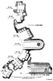 ![]() 図2 バージャー仏教石窟群 配置図および第12窟断面図 |