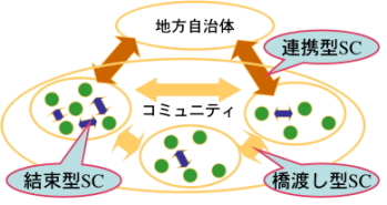 | 図1 社会関係資本(ソーシャル・キャピタル :SG)の概念 | 図2 文化のみちエリアでの連携 |