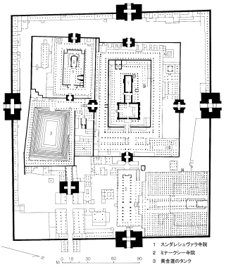 ![]() Cミーナクシー寺院 囲みとゴープラム(マドゥライ) Dミーナクシー寺院 寺院配置図(マドゥライ) |