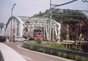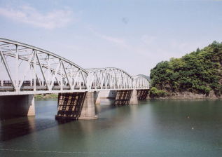 | ■発掘者コメント 愛知県と岐阜県の境を決めている木曽川は、大正のある日、地理学者、志賀重昂が、川中より岸を眺めた景色がライン河のそれに似ていることから、日本ラインと呼ぶようになった。また、李白の詩「早発白帝城」の「朝に辞す白帝彩雲の間、千里の江陵一日にして還る…」より犬山城を白帝城と呼び、上流には、江陵閣と呼ぶ建物もあるほどの景勝地である。この地の尾張と鵜沼は船で渡っていたが、交通量が増え、不便となり、やがて両県によって木橋が架けられ、賃取橋であったが不便さはやわらいだ。1923年(大正12)、今の鉄橋がかけられ犬山橋と命名される。竣工は、1925年(大正14)11月、総工費66.6万円。道路と専用軌道の鉄道との併用橋であって、わが国では数少ない形式であった石積みの橋脚は補強された。リベット構造の橋桁は、今もそのまま影を残しており、木曽川に映え美しい。現在、道路部分は、隣に4車線の新橋ができて渋滞は解消されている。 この橋によく似た橋では、長野県の千曲川にかかる橋で長野市と須坂市を結ぶ村山橋がある。1924年(大正13)に着工し、長野電鉄長野線との併用橋で、当時の橋は今のように溶接ではなく、リベット構造である。このリベット構造で最も見事な橋は永代橋である。アーチ部分のフランヂの厚さは約30cm近くあり、何枚かのプレートを重ね合わせている。これを一体化するため、リベットは長さが30cm以上になり、リベットを焼くのに中央はよく焼き、両端を中より固めに焼き、打ち込んだ時に中がよく潰れるよう考えられていた。外国人技師によってでき上がった。 |