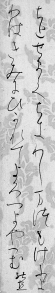 | ⑦草かな。秋萩帖(東京国立博物館蔵(国宝)) 一○世紀末の作で、小野道風の筆と伝。「安幾破起乃之多者以□都久(あきはぎのしたばいろづく)…」「秋萩の下葉色づく」 |