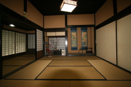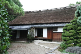 | ■紹介者コメント 当家の記録によると、服部家の先祖は南北朝時代の南朝の遺臣で、1435年この地域に移り住んだ。そして中興の祖、服部右衛門正友が1576年(天正4)当地に居を構え、耕地を開拓し、浪人の身分で庄屋役を務めたと伝えられる。この時の住居が修復と改造を経て現在に至ったものであり、現在残る民家としては古い部類に入る。しかも、広い敷地の中に立派な表門や土塀、茶室、離れ屋敷、蔵なども一式残り往時の生活ぶりを窺い知ることができる。 庄屋としての役割は江戸時代中期からで、それ以前は士族としてこの地方の開墾や村の再興を行なったという特異な経歴を反映し、主屋は一風変わった平面型となっている。農家としての作業用土間スペースの広さは全体の比率の中では小さく、逆に畳敷きの座敷面積の比率は大きい。座敷を中心とした接客部分と土間や勝手の間などの生活部分がしっかりとゾーニングされ、さらに座敷のための専用の玄関(式台)があることが、現在残る民家としてはユニークである。また表門・土塀も服部家がこの地域の有力者であったことを物語るに足る立派な構えである。単体でなく構え全体として保存されることでこの住宅の価値を高めている。 以前、ここで小コンサートなどの催しがあるという新聞記事をよく見たが、今回初めて訪問して、今では世代も変わりそういった催しもなく、むしろ維持することに心を砕いているようだ。 *予約見学。電話0567-65-4355(弥富市歴史民俗資料館) |