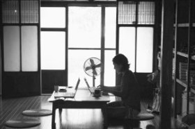 | 金華の町並みや歴史、文化を調べながら撮影をし、紹介冊子なども作りました。これはその撮影風景。 | 普段は静かな町家。真夏でも風が通って比較的涼しい環境で仕事をします。 | 月に一度の「景観サロン」では、世代やセクターを越えてたくさんの人が集まって、寄り合いをやっています。 |