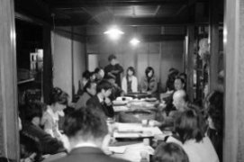| 我が家の居間で定期的に開かれている「景観サロン」という寄り合いには、大学の先生や建築家などの専門家や、地元のまちづくりに携わる方、役所の景観やまちづくりに携わる方、それと僕らの仲間の若者が集まって、それぞれの活動の情報交換などを行っていました。みんなは町家そのものに興味が出てきて、古い町家の見学会なども行う中で、金華ならではのこの古い町並みが壊れていくのを、なんとか守れないかという気運が高まってきました。 そして「借り手と貸し手を繋ぐ縁づくり」を掲げ、2006年の11月に、ぎふ町家情報バンクが立ち上がりました。理事には、岐阜大学の山崎先生、富樫先生、地域のまちつくり会の川島さん、安藤さん、それと僕。事務局には若い仲間が参加しています。京都のように空き家がたくさんあるわけでもなく、不動産情報が公開されているわけでもない岐阜では、「この家、どうするつもりかな?」と思ったときに大家さんに直接お話し、「借りたい」という方をご紹介していく、というような直接的な縁繋ぎ(実際の契約の際には不動産屋さんに入ってもらいます)しか方法が無い、というのが僕たちの結論でした。おかげさまで町家暮らしに興味のある若い人が次第に集まって来て、現在やっと、交渉が進む物件が現れ始めました。 |