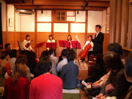| 一方、地区では最近、数多くのまち歩きイベントや音楽会、寄席、書の展示といった「まちを楽しむ」取り組みが行われるようになってきました。 例として昨年度行われたコンサートを挙げてみると、自治会主催で一般家庭の蔵で行われた室内楽団と男声合唱のコンサート、若者たちが町家で行ったサックスコンサートとバンドネオン、ギターコンサート、同じく町家でNPO法人が開催したフルートコンサート、住民(個人)主催の洋館でのジャズコンサート、バイオリンコンサート、まちつくり会共催の路上での絵本の弾き語りライブ…といった催しが23.4haというさほど広くもない地区の中で、それぞれ異なる団体主催で行われています。 それらひとつひとつは独立していながらも、お互いが参加しあったり協力したりとゆるくつながっている。 このような活動は、まちつくり会の活動開始以前には、あまり実施されていなかったように思われます。 会がただルール作りだけを追求せず、「まちを楽しもう」とする活動で住民の共感を得る活動を行ってきたことが環境を構築したのではないでしょうか。さらに他の活動も認め応援していく姿勢が多くの活動を引き出してきたと言っても良いのではないでしょうか。 この結果、まちづくり会だけがまちをリードするのではなく、さまざまな団体や個人がお互いに関係しあって、少しずつまちを持ち上げる、そんな動きが生まれつつあるように思われるのです。 |