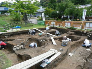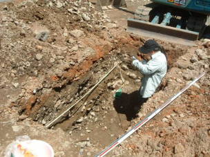 | 「大道」側溝(?)の発掘現場 | 井口・岐阜城下町の試掘調査 |