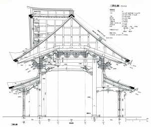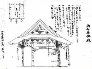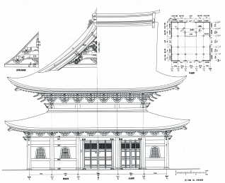 | 今回は、仏教寺院に属する建築、すなわち「堂」の種類と木割についての話である。前回の神社建築にかかわる「社」と根本的に違うのは、神を祀る本殿と異なり、「堂」の建物のほとんどがその内部に人が入ることを前提としているため、人が入れないような極端に小さなスケールのものは実際には使えないことであろう。したがって、大工が木割に基づいて建物を造る際には、木割書に絶対寸法の指示がなくとも、常識的なスケール感覚が求められる。 | ||
