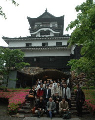 | 犬山遊園駅から犬山城まではあいにくの雨に見舞われて、私達以外の他の見学者はまばらである。 織田信長の叔父の織田信康の造営から始まる国宝犬山城は、平成16年の財団法人移管までは、日本では唯一、個人の成瀬家の所有の城であったことから、最上階からの眺めは違いがあるのであろうかと思いをめぐらす。 |