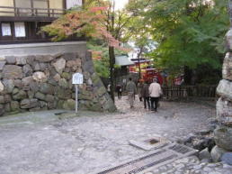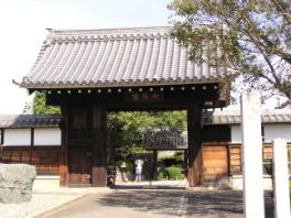 | 犬山城黒門跡。現在も柱礎石がひとつ残る | 徳林寺山門。奥に見えるのが中門 | 専修院東門。袖塀も門扉と同じ格子組 |