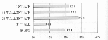 | 図1 地方別の店舗閉鎖率(( )内は事例数:以下同様) | 図3 閉鎖店舗の築年数(N=136) |