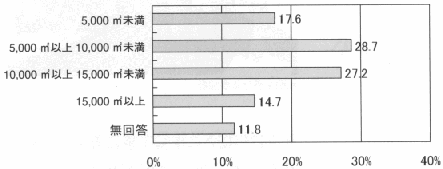 | 上記4社の事例227のうち136事例について、その現況を把握した注3)。 閉鎖施設の築年数(図3)は「21 年以上30 年以下」が28%と最も多いが、「10年以下」と「11 年以上20 年以下」が計45%であり、築年数の浅い店舗が多数含まれている。また、閉鎖店舗部分の面積(図4)は「5,000㎡以上10,000㎡未満」と「10,000㎡以上15,000㎡未満」が共に28%前後で多い。この規模は、日本ショッピングセンター協会の会員社店舗2704(2005 年12 月末)の、キーテナント平均面積7,289㎡と比べると大きく、4社の事例には比較的大規模な店舗が多いことがわかる。 |