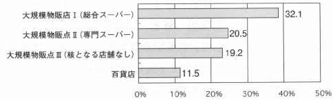 | [用語の定義] ・ 大規模物販店Ⅰ:核となる用途が総合スーパーで再利用されている。 ・ 大規模物販店Ⅱ:核となる用途が専門スーパー(家電量販店、ホームセンターなども含める)または専門店で再利用されている。 ・ 大規模物販店Ⅲ:核となる用途なしで小規模店舗を集め再利用されている。 ・ 百貨店:核となる用途が百貨店で再利用されている。 ※「 核となる用途」とは、閉鎖施設の延床面積(面積が明確でない場合は階数とする)の約1/3 以上を使用している事業者とする。 |