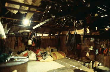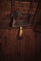 | 家の奥にある祭壇、稲穂の束が見える | 雑然とした家の内部。中央の奥に祭壇がある | 祖先に供物を捧げる老女 |