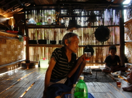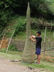 | ティップカオ。蒸したばかりのもち米が入っている | 巨大な筌(うけ) (北ラオス) | 竹壁を通して柔らかな光が差し込む(ラフ、北タイ) |